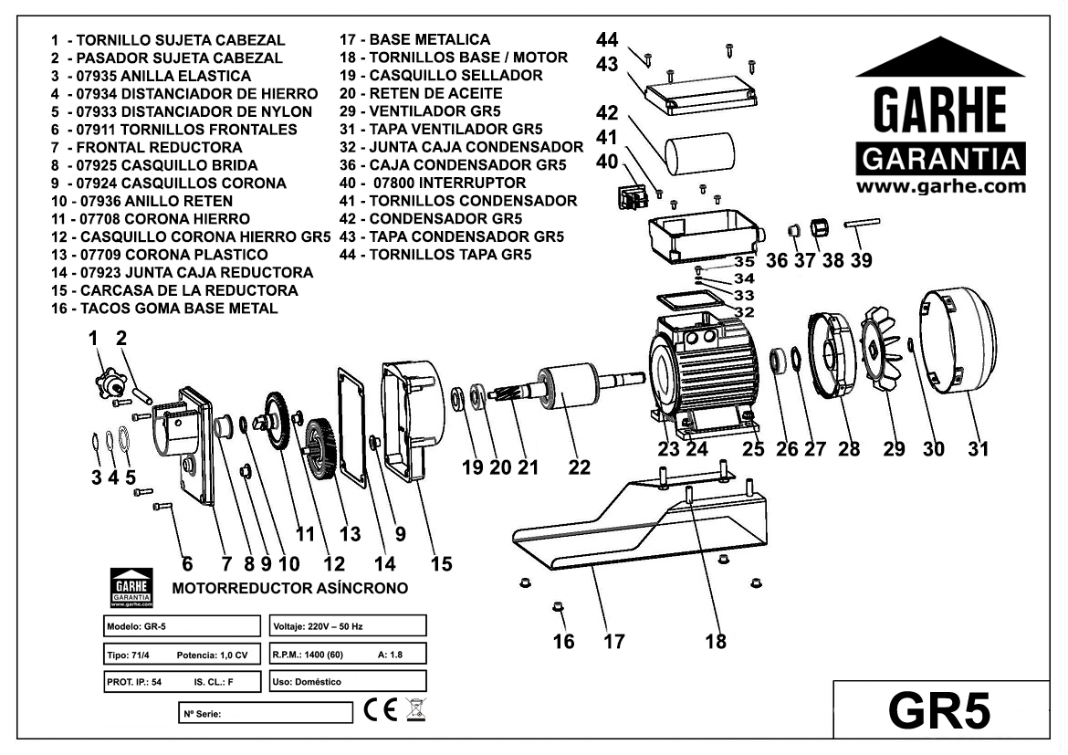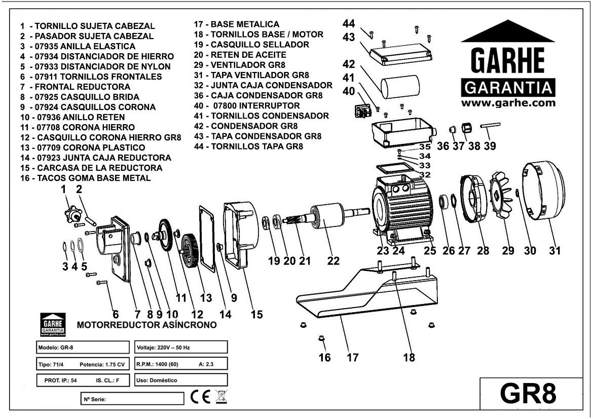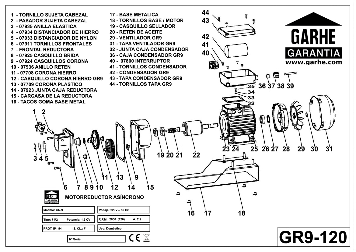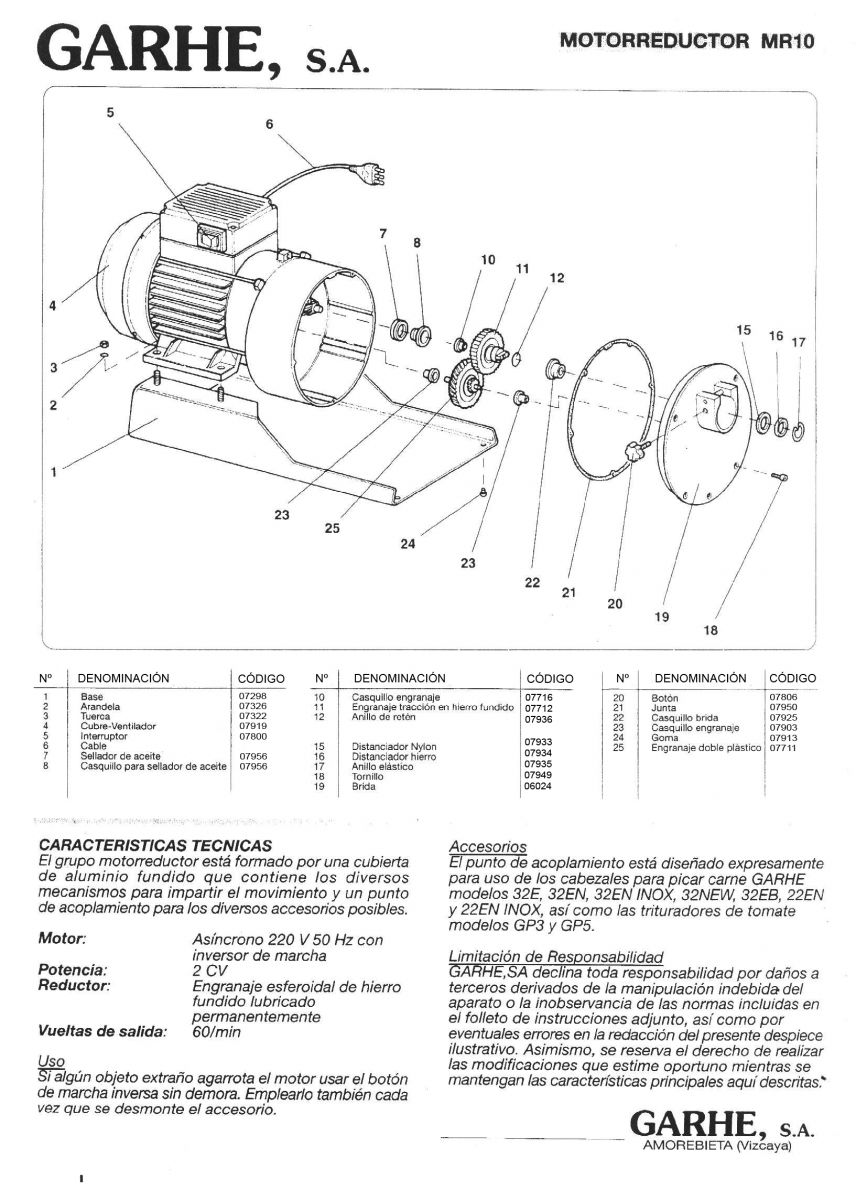 Presion Vacio: 60 cm./Hg. (0,8 bar)