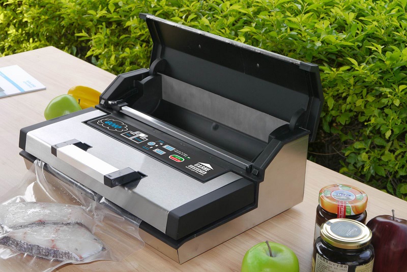 Semi-automatic packaging machine with steel deck compartment with built-in cutter rolls, double body pump and sealing bar 3mm even with the possibility of double sealed.