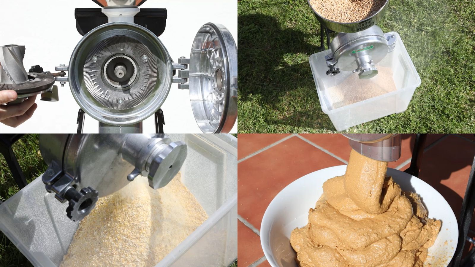 Un juego de Rodanas de acero para moler alimentos secos.